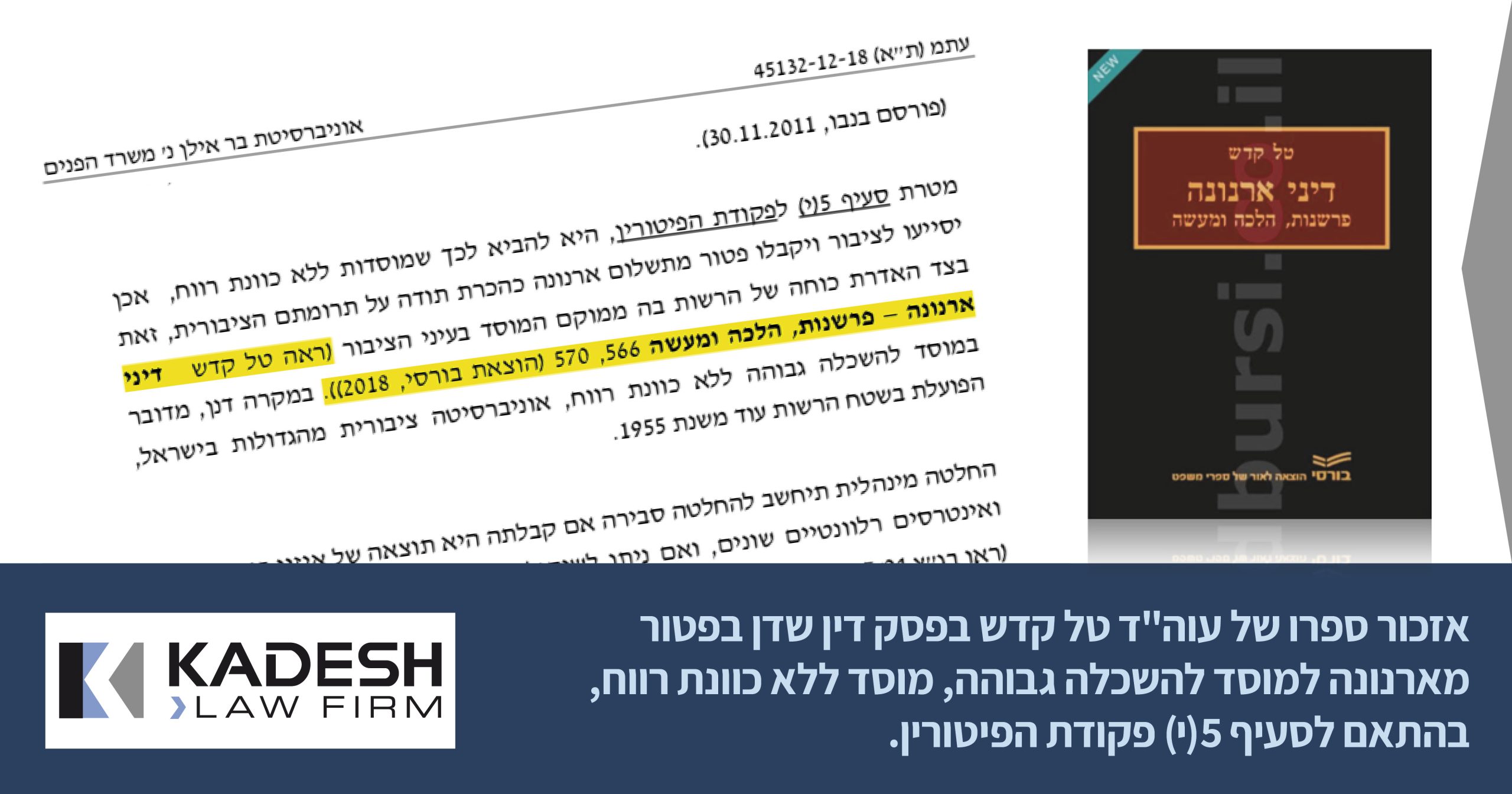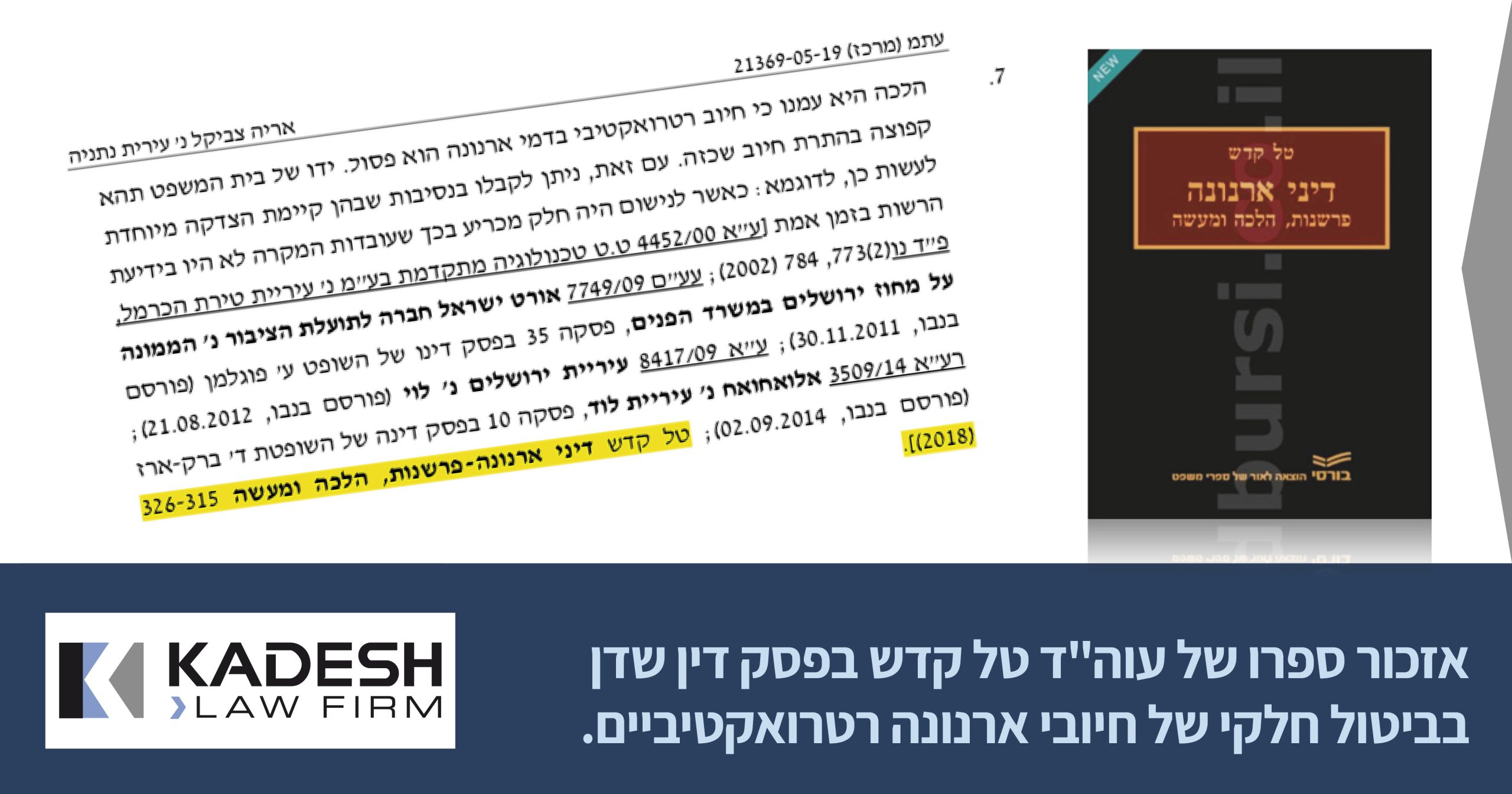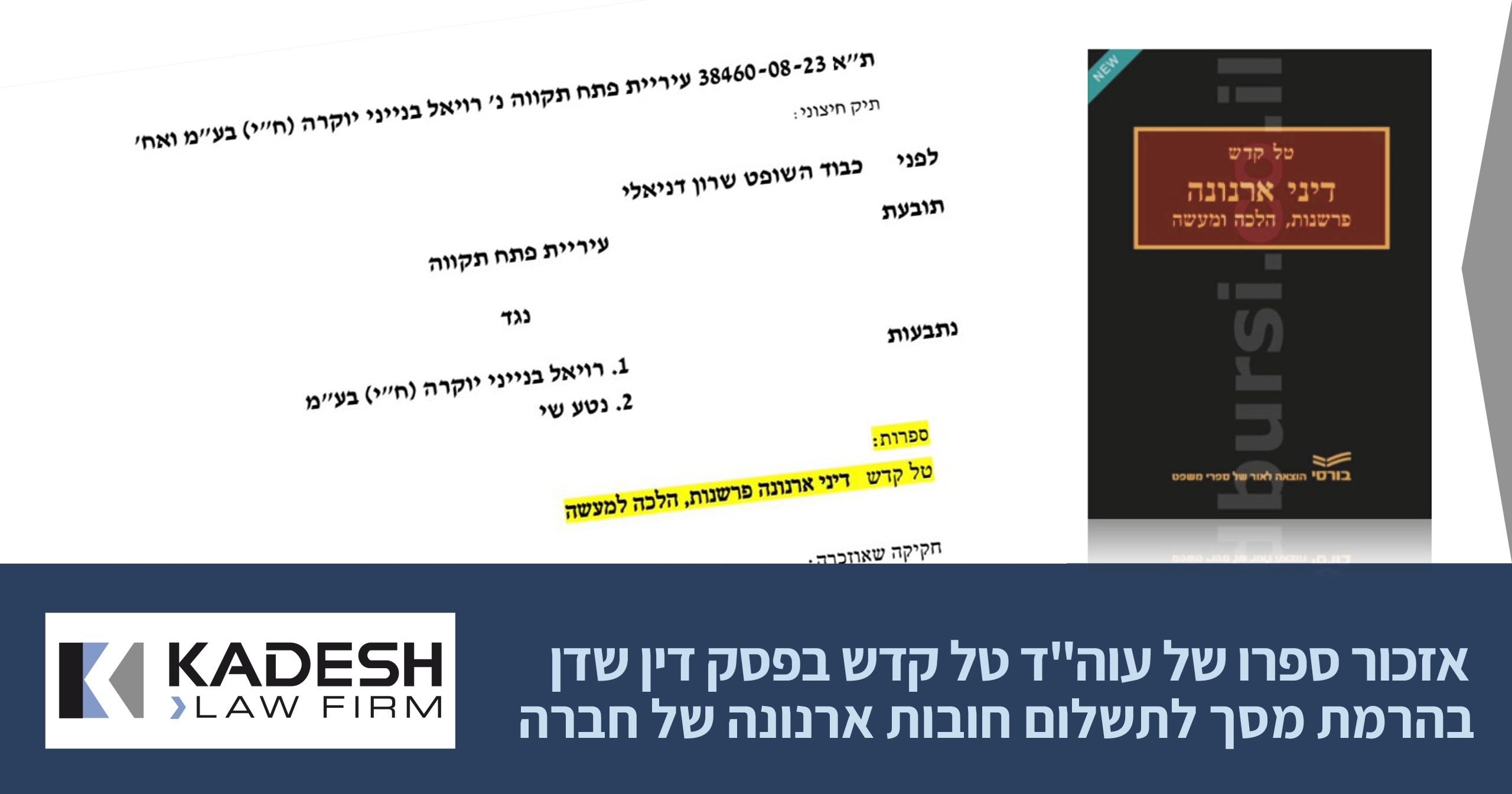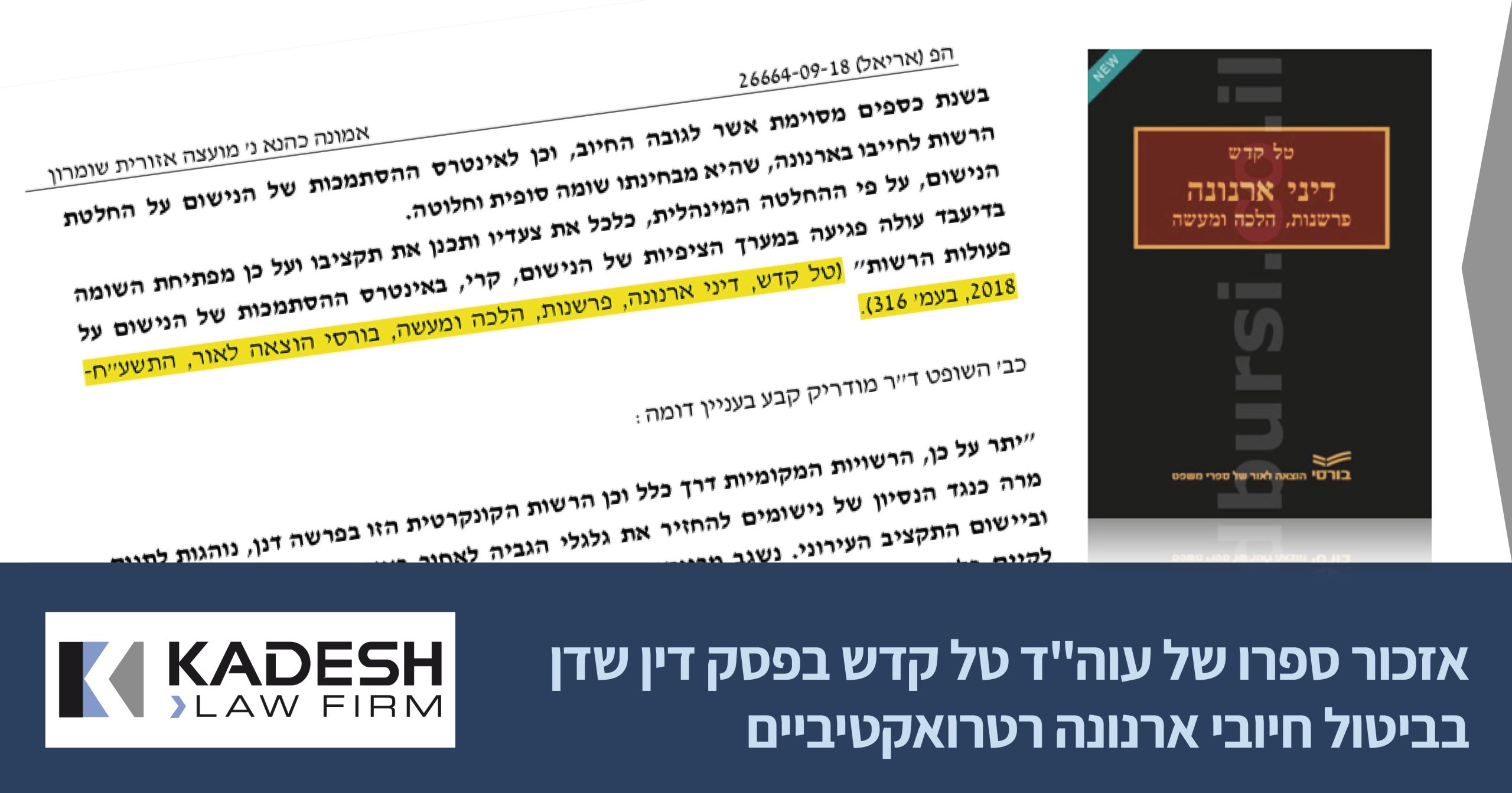 הספר "דיני ארנונה – פרשנות הלכה ומעשה" פרי עטו של עו"ד ונוטריון טל קדש יצא לאור בשנת 2018.